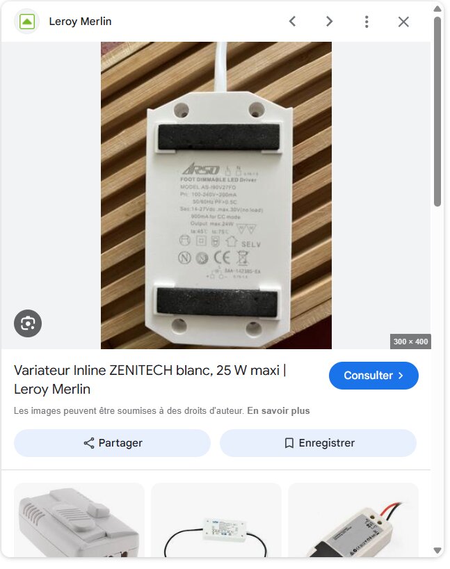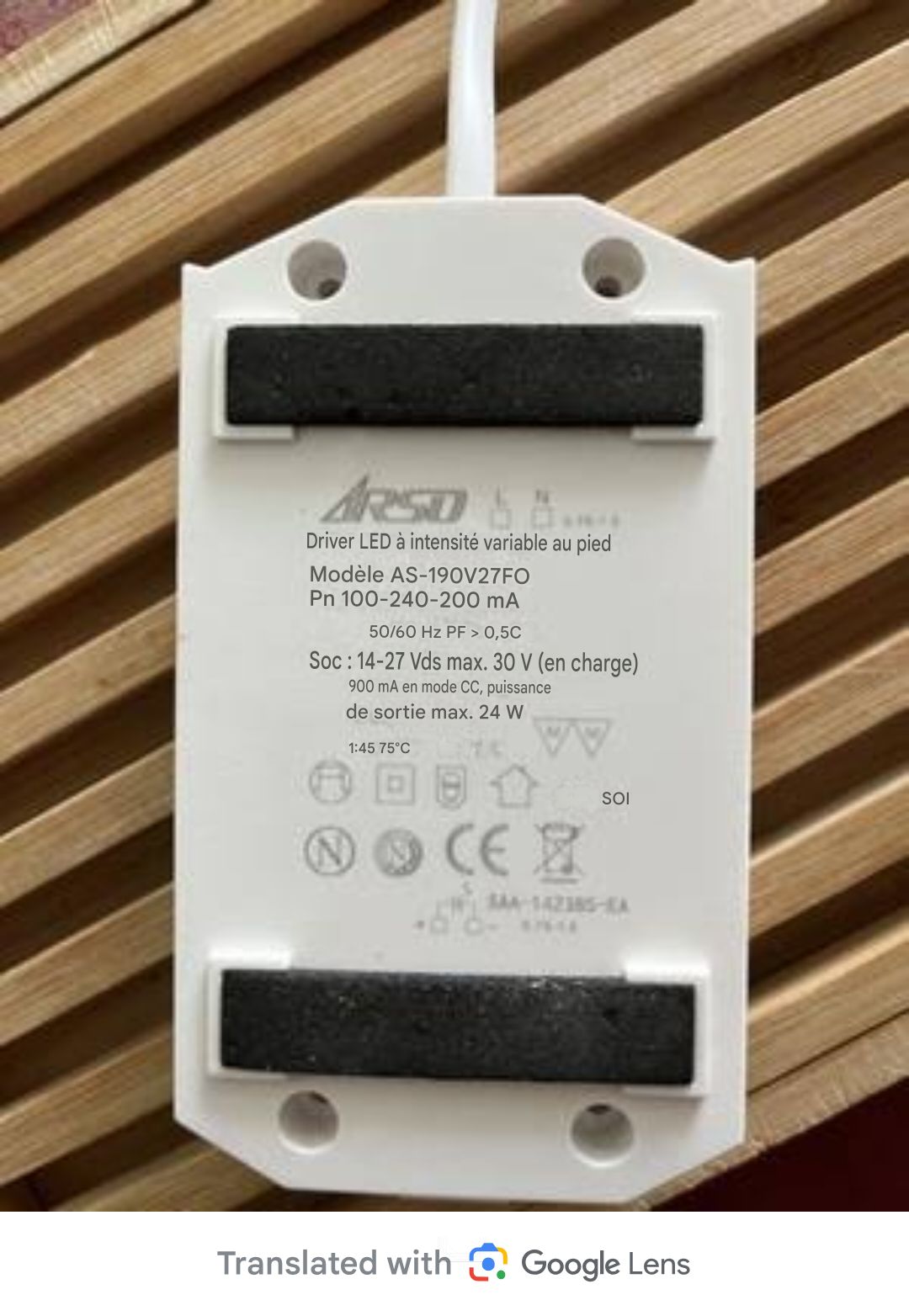 Bonjour aux électroniciens, un ami m’a chargé de réparer son variateur à pied qui alimente un lampadaire à rampe LED. L’alim d’origine livrée avec le lampadaire sortait de