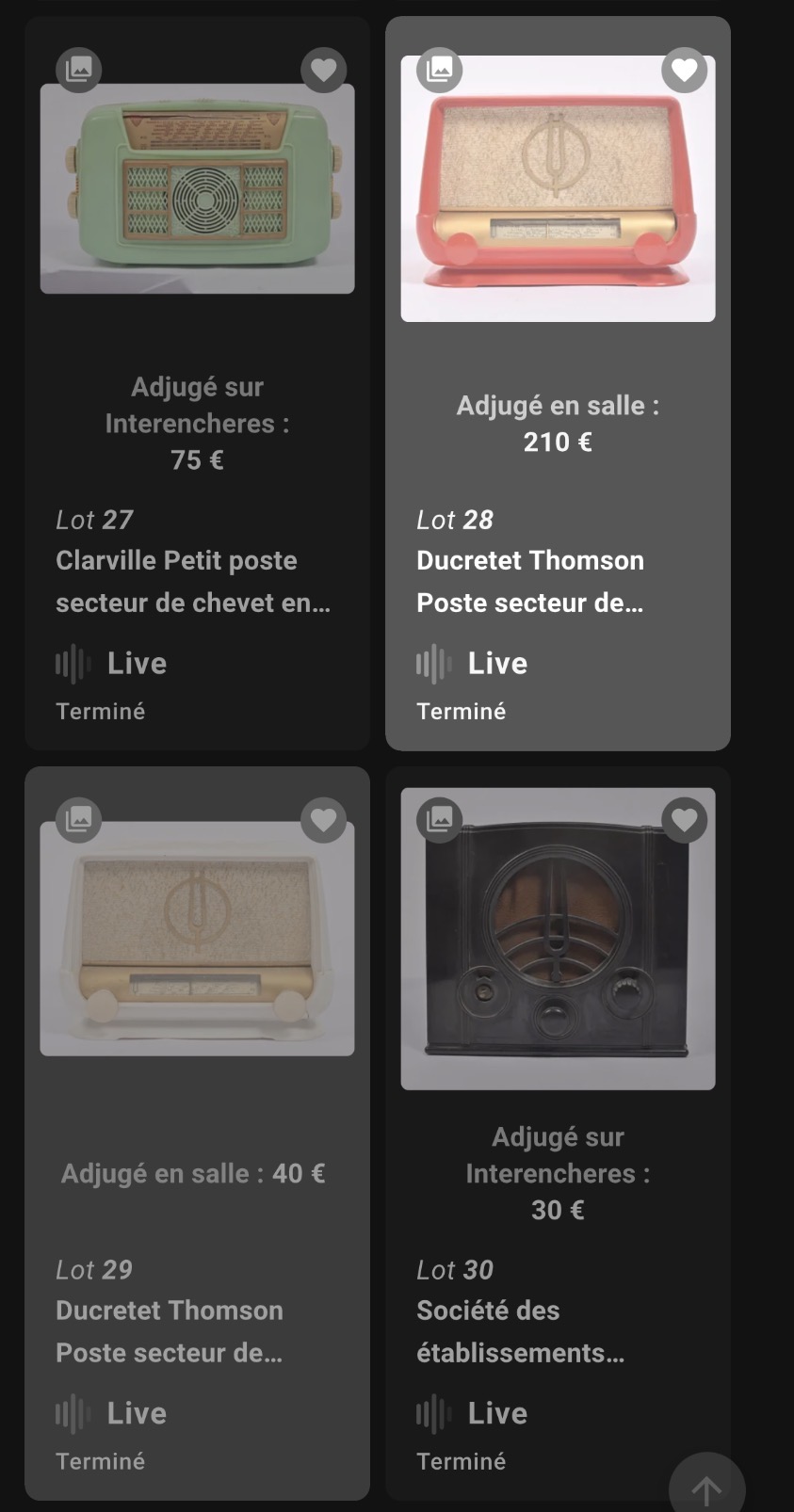 Bon ba voilà, finalement, une bonne vente aux enchères ! Je ne regrette pas du tout de m’être rendu sur place ! (les lampes se cachaient dans le lot 434, mais il fallait remplir la voiture complète, car c’était un énorme lots de pièces détachées. J’ai alors passé mon tour).