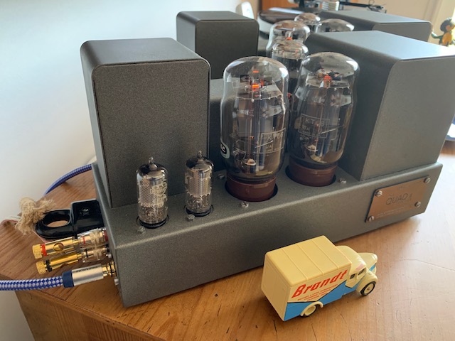 Non je n’ai pas fait mon ampli 300B, c’est toujours dans ma tête et mes projets futurs, mais j’ai trouvé des blocs mono Quad II que j’ai restauré de fonds en combles, et qui me régalent