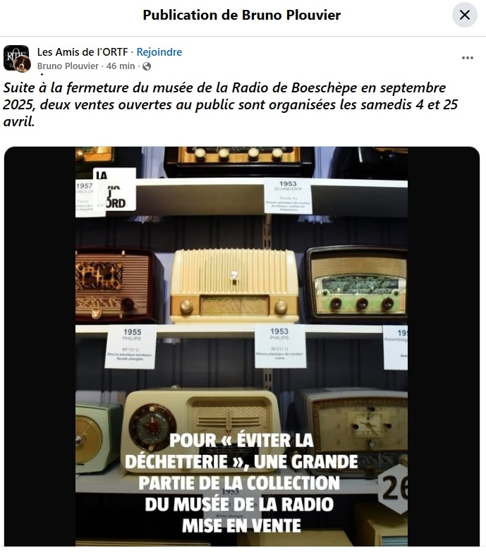 Merci de bien vouloir noter ces ventes auront lieu au musée de la radio et ce n’est en aucun cas une bourse ,la bourse annuelle n’aura pas lieu ! Merci de partager cette information !