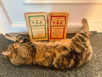 Pour la petite histoire, je nâai pas beaucoup de mĂ©rite concernant les chats : au dĂ©part quand je rapportais Ă la maison du matĂ©riel de Papa pour le photographier et le mettre en vente, ce sont eux qui venaient systĂ©matiquement renifler⊠De guerre lasse, jâai abandonnĂ© lâidĂ©e de les chasser et pris quelques photos avec. Puis je me suis aperçue que cela apportait un peu de vie et de convivialitĂ© aux annonces, et du lien avec les acheteurs. Donc maintenant je rĂ©munĂšre de quelques friandises leur prĂ©sence sur les photos. Whisky Ă©tant plus gourmand que mon second chat Neko, câest souvent lui qui tient le rĂŽle la vedette et rapplique dĂšs quâil me voit poser un poste TSF par terre (lâautre ne daignant pas interrompre sa sieste pour si peu).