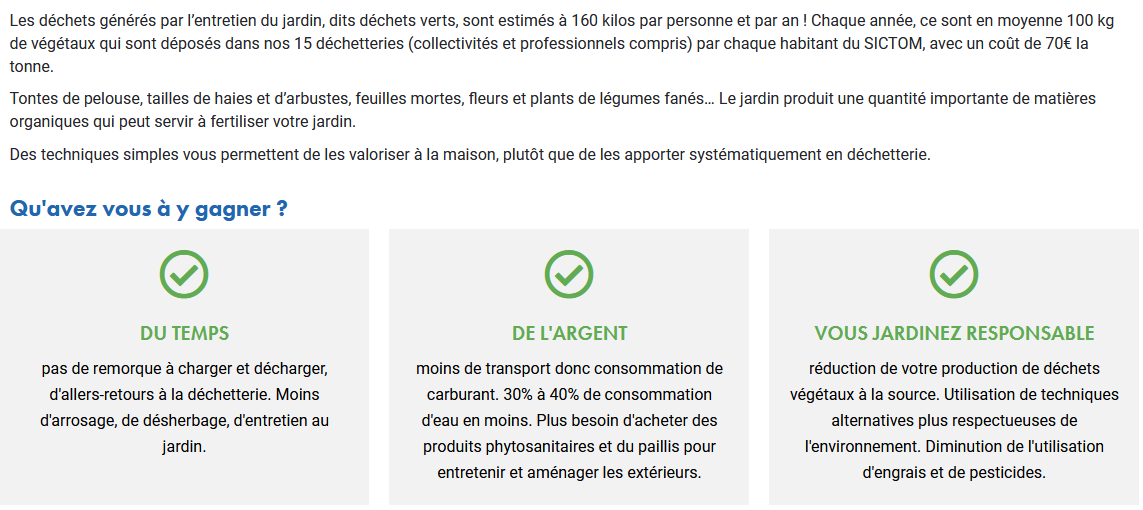 Je ne dépose aucun déchet vert en déchèterie (sauf les plantes malades). C’est pour moi, un non sens écologique de débarrasser du « vert » en déchèterie et d’aller acheter du compost en jardinerie.