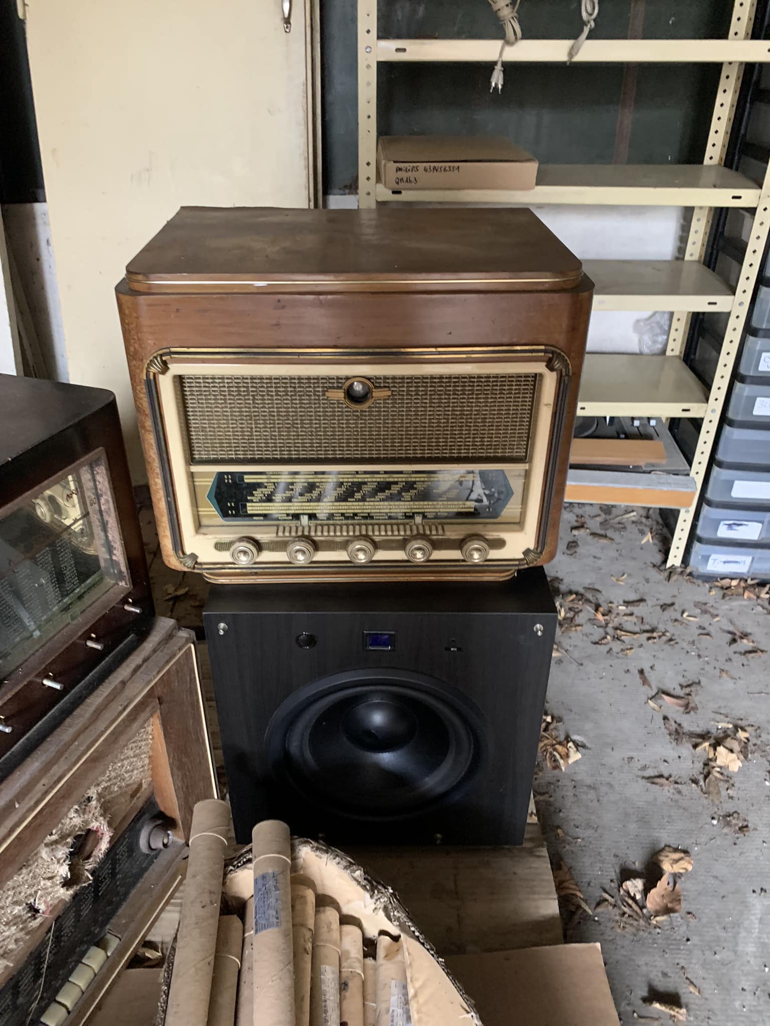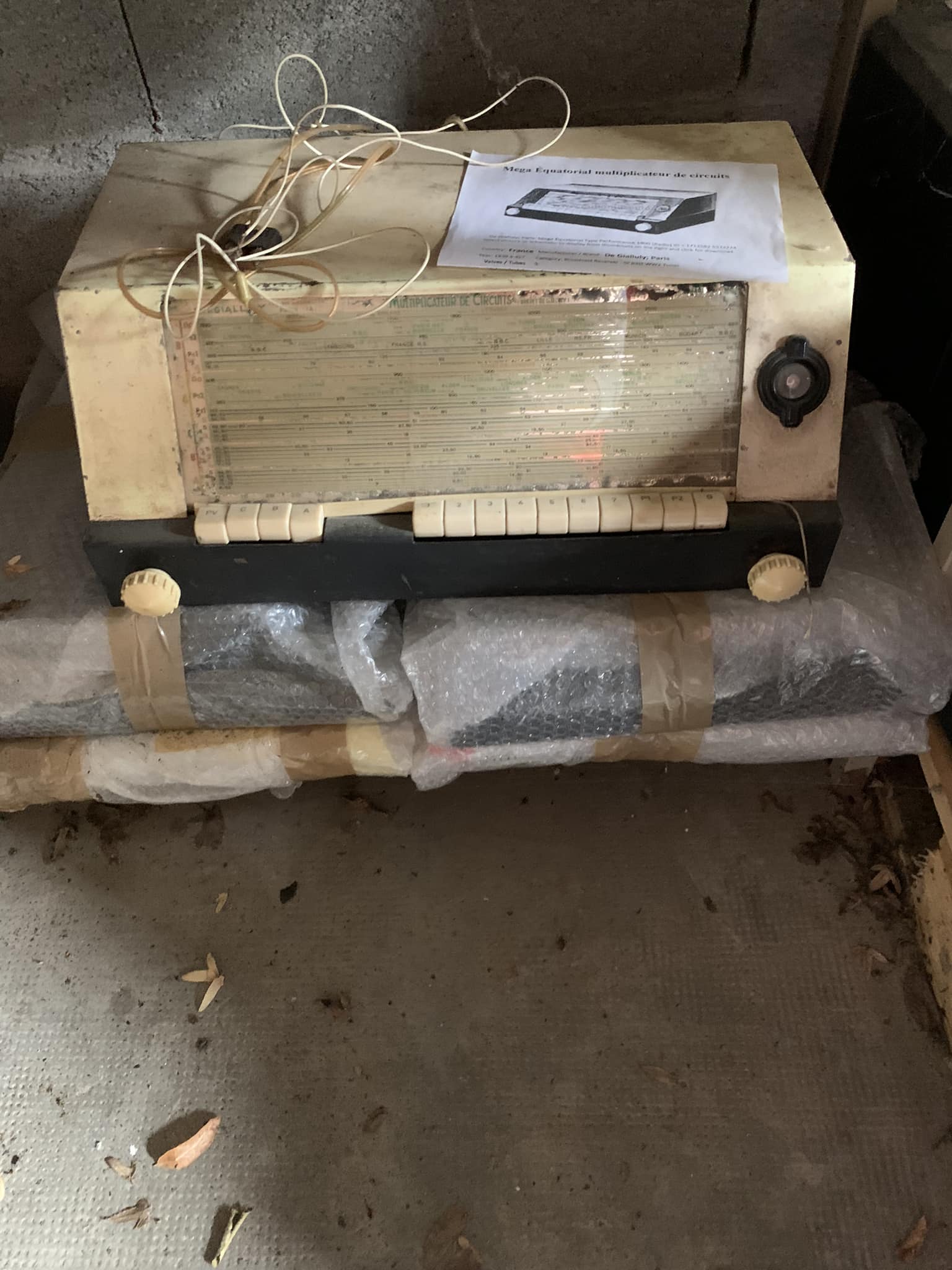 Dernière photo : le fameux Méga 25 DE GIALLULY, tuner tropicalisé. Caisse refaite, à l’origine, c’est une caisse métallique comme le montre le document posé dessus.