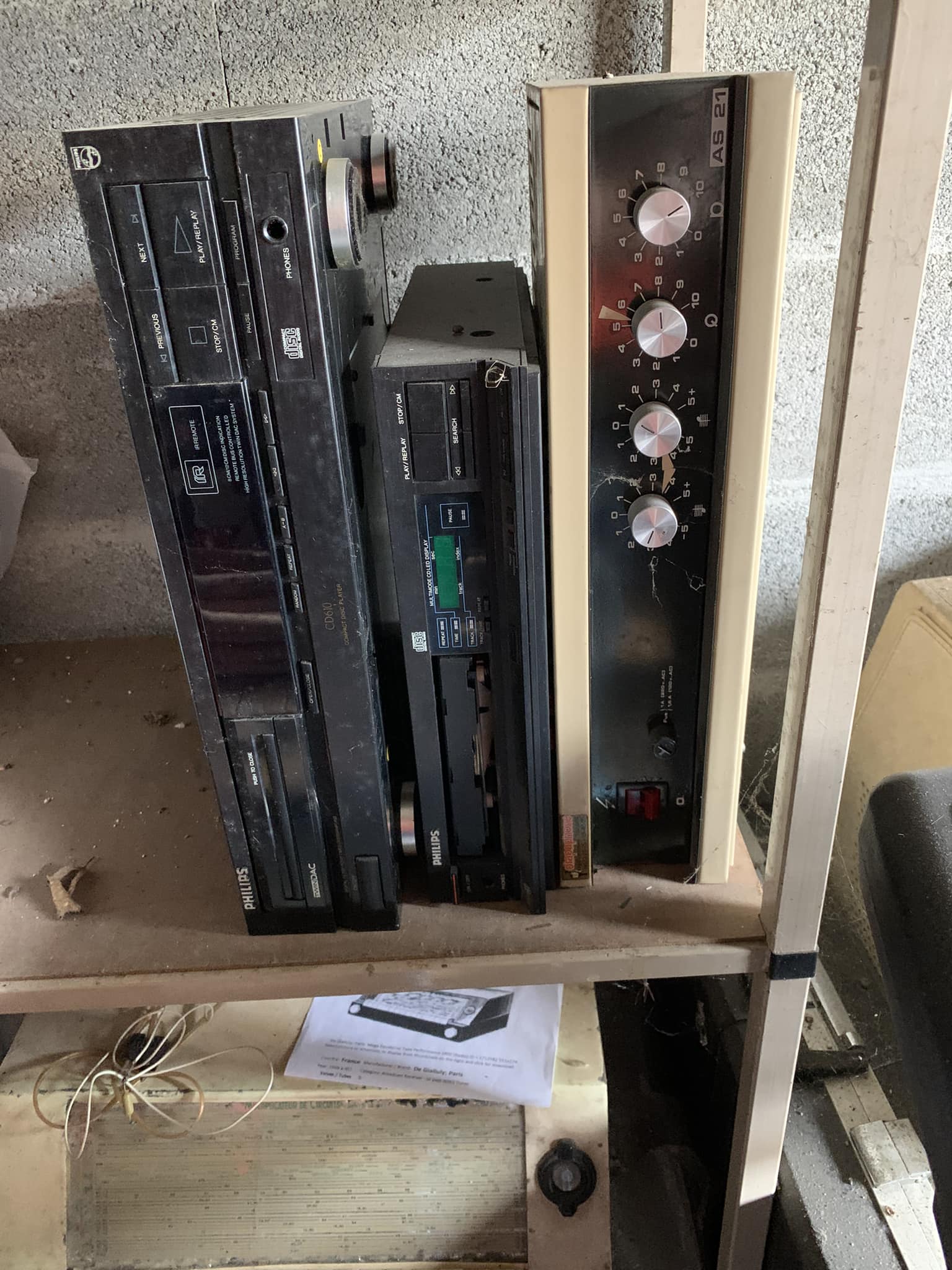 Bonjour à tous, je suis en train de vider un atelier de réparation Hifi-Vidéo à Toulouse parce que je cesse mon activité, tout doit disparaître afin de vider le local commercial. Il y a de tout pour pièces ou dans l’état, de la TSF, de la platine K7, des platines vinyle, des amplis, des CD, des mires, des oscillos, des alims de labo, un fer à souder Weller, des étagères, des tables roulante, de la doc technique vidéo VHS et écran plat (le tube cathodique j’en ai plus tout est déjà parti à la benne) etc… Un vide atelier sera organisé sur place le samedi 26 avril (horaire pas encore définit mais je pense de 10h à 17h) pour vendre le mobilier. Je suis tellement pris, que je ne pourrai pas organiser des expéditions. Des photos suivront.