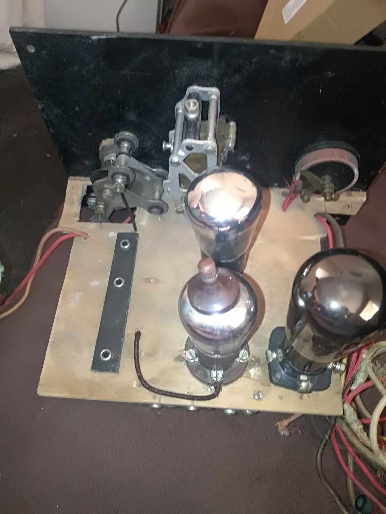 Alors aujourd’hui j’ai reçu un boitier radio neuf et selon les composants il sera probablement très ancien, d’après le premier contrôle, les batteries se trouvaient probablement à l’intérieur du boitier ? Lampes installées A430, RE304, RE154. La bobine est probablement un remplacement.