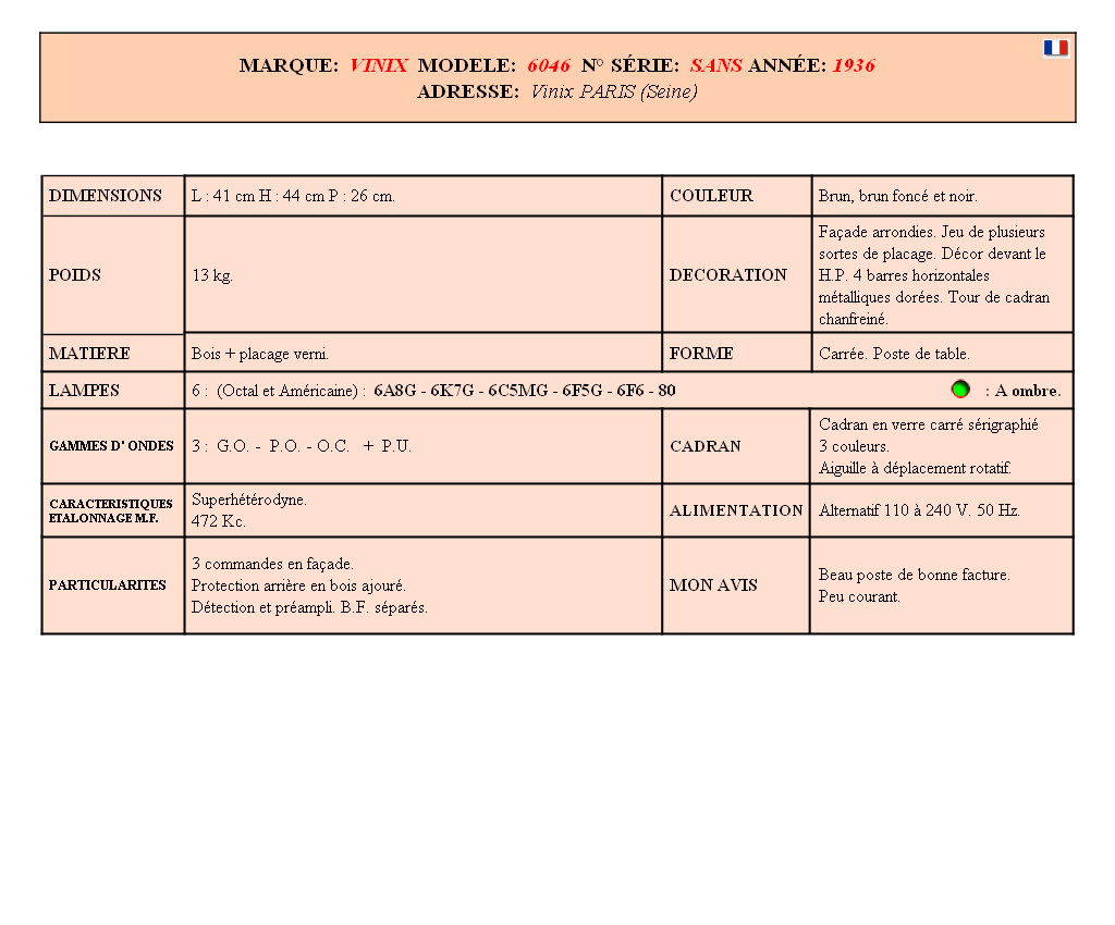 Le Vinix de Gilles est le plus vieux modèle de cette marque présentée dans le Grand Livre. L’origine du nom de cette marque est inconnu. Je n’ai pas de Vinix mais de l’Amplix :