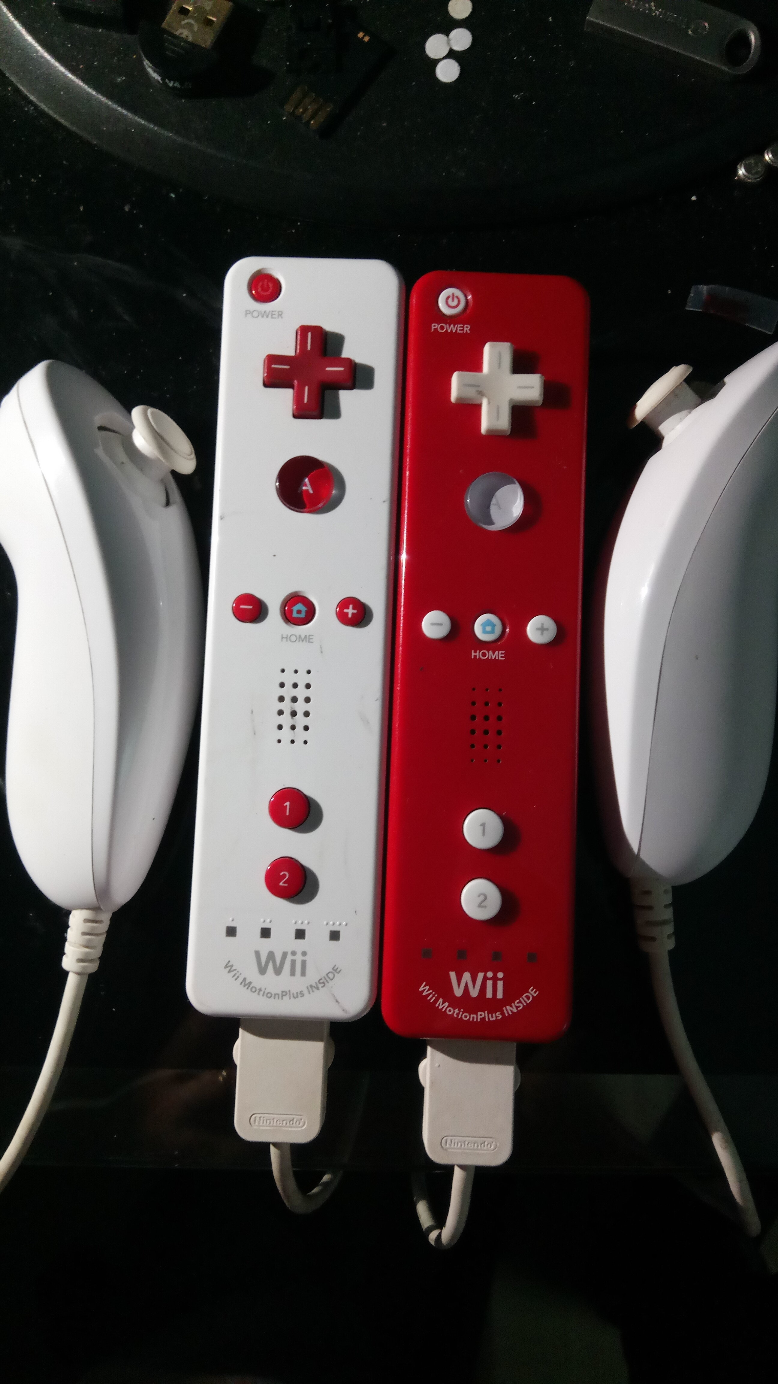 — Ayant réussi à télécharger des jeux Wii et Gamecube et ayant besoin d’une Wiimote avec Motion+ intégré, j’en commandai une rouge et la reçus. Plus tard, lors de l’“inspection” du bac de recyclage d’une grande surface de bricolage, qu’y vois-je de mes yeux ébahis ? Deux Wiimotes officielles Nintendo (car il y a des “fakes” !) blanches, une Sensor-bar et deux alimentations ainsi que des cordons… Ni une ni deux, je récupère les Wiimotes et la sensor-bar et m’aperçois que l’une d’entre elles a le motion+ intégré !