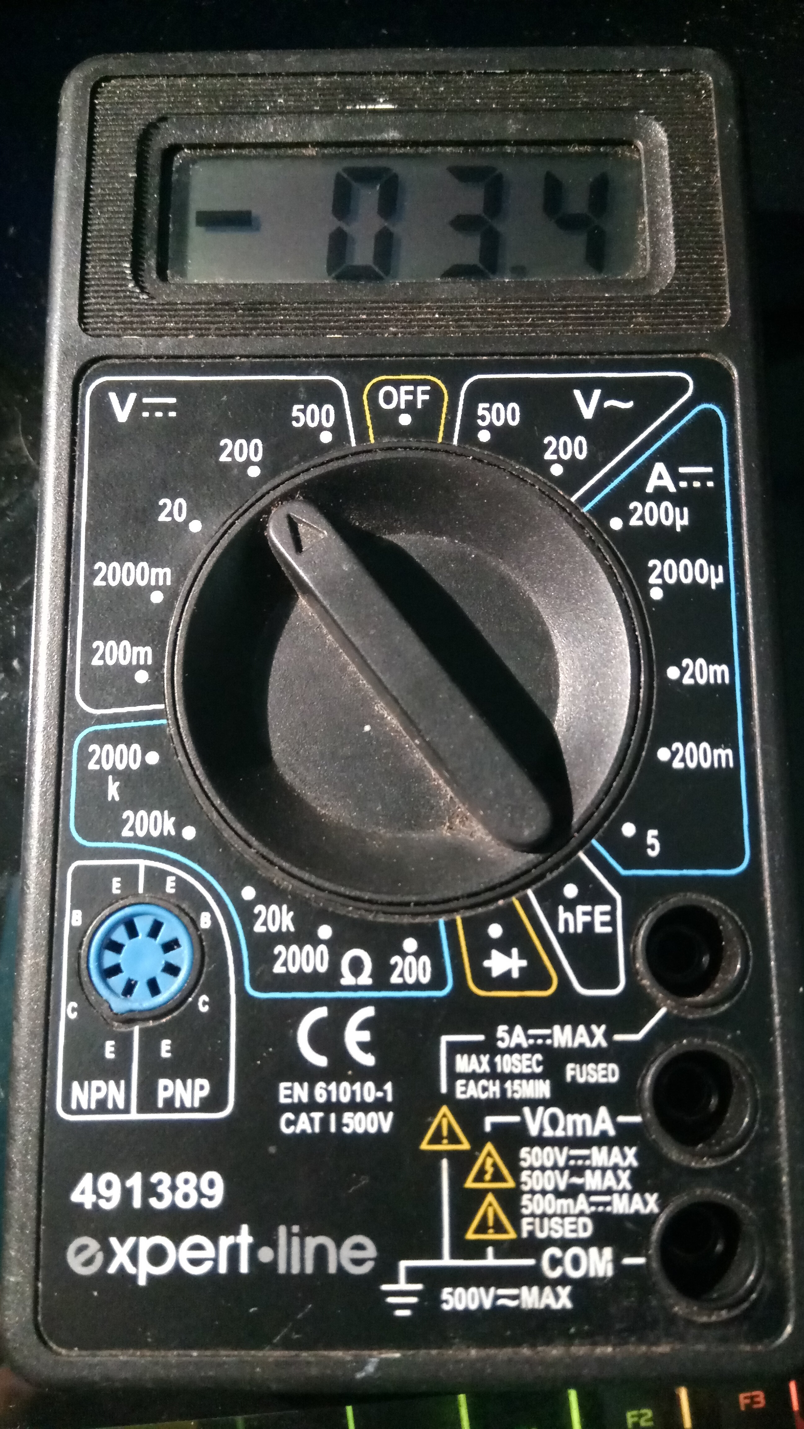 — Récupéré ce matin dans le bac de recyclage d’une grande surface de bricolage, ce petit multimètre, fonctionnel :