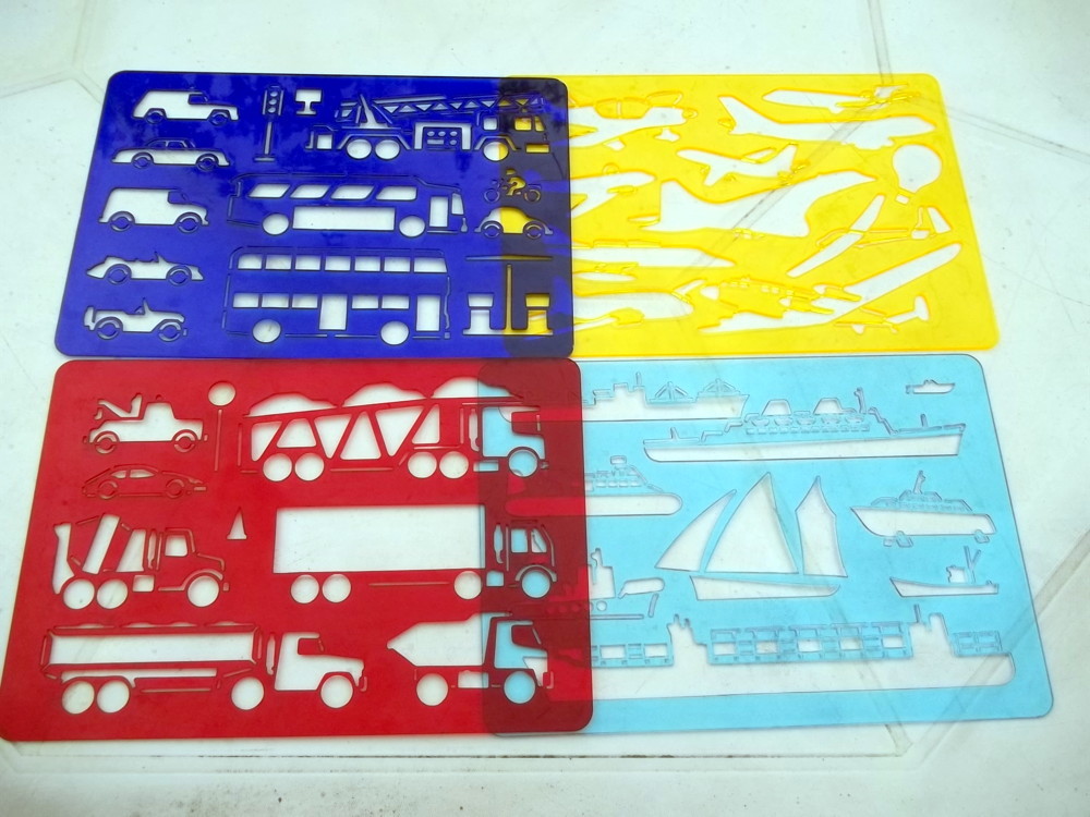 … et pour un public plus jeune (pour les enfants demandant « dessinne moi un avion ! » ) j’ai trouvé ces « normographes pour enfant » (que j’ai lavé et désinfecté) :