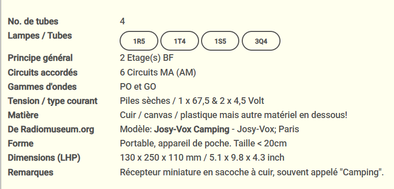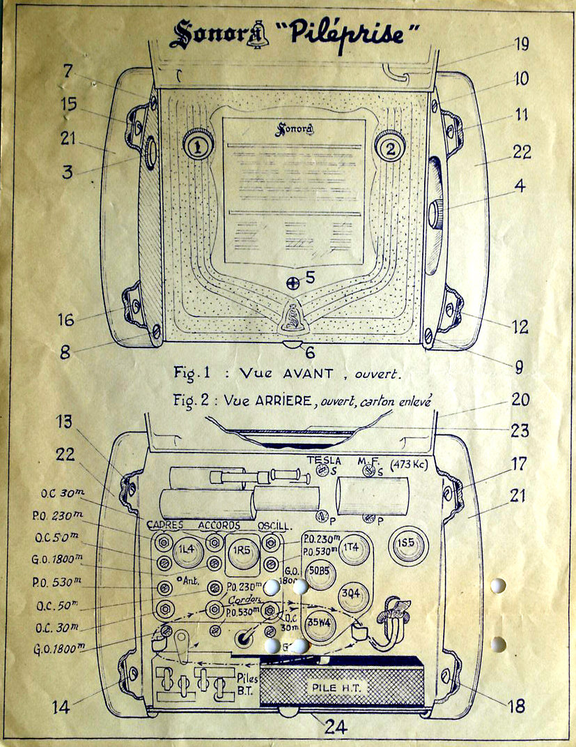 Ça, c’est le plus facile Ampli HF 1L4, Convertisseur 1R5 , ampli MF 1L4, détection / BF 1S5 , puissance 3Q(ou S) 4. Il y a également une valve,35W4, pour le fonctionnement secteur. mais il n’y a que 6 tubes au total.