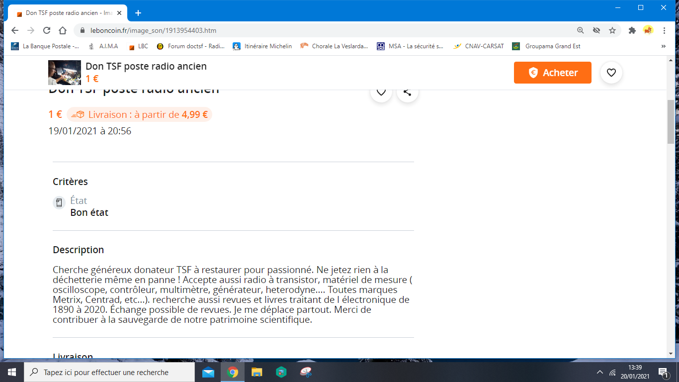 J’ai contacté le vendeur : sa proposition du Radiola, était une parodie de vente, pour lutter contre les aigrefins de tout poil, qui sévissent sur le B Coin en demandant des prix pharaoniques. Il continue…
