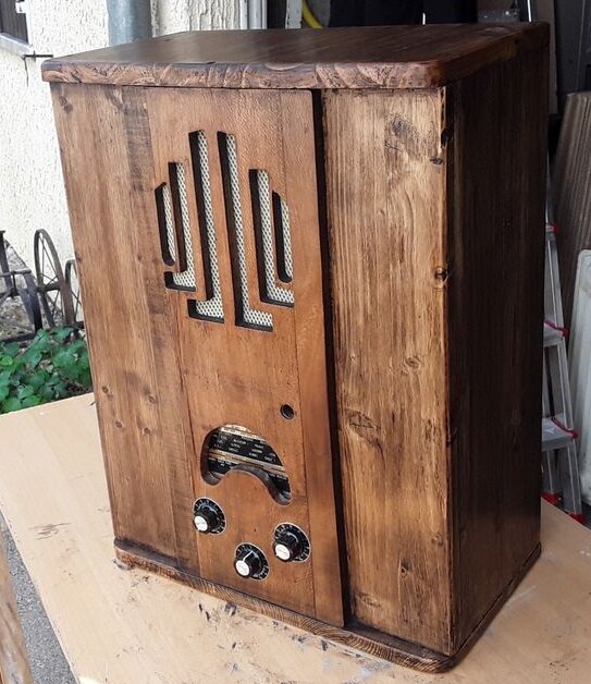 la caisse est du " bois blanc " peinturluré au pinceau à la lasure genre " bondex " , mais c’ est astucieux et pas cher !