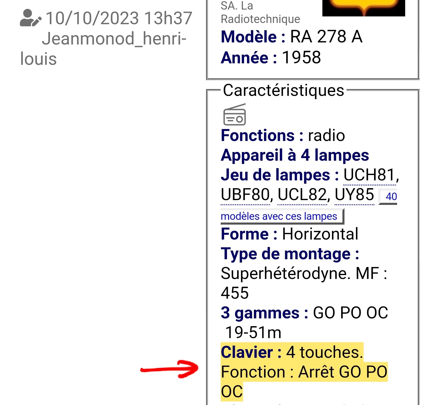 Trouvé grâce au jeu de lampes du b2f-80, mais je ne comprends pas que ma recherche initiale ne l’ai pas mis dans la liste de résultats ? Appareil Radio, lampes, 4 touches, plastique.