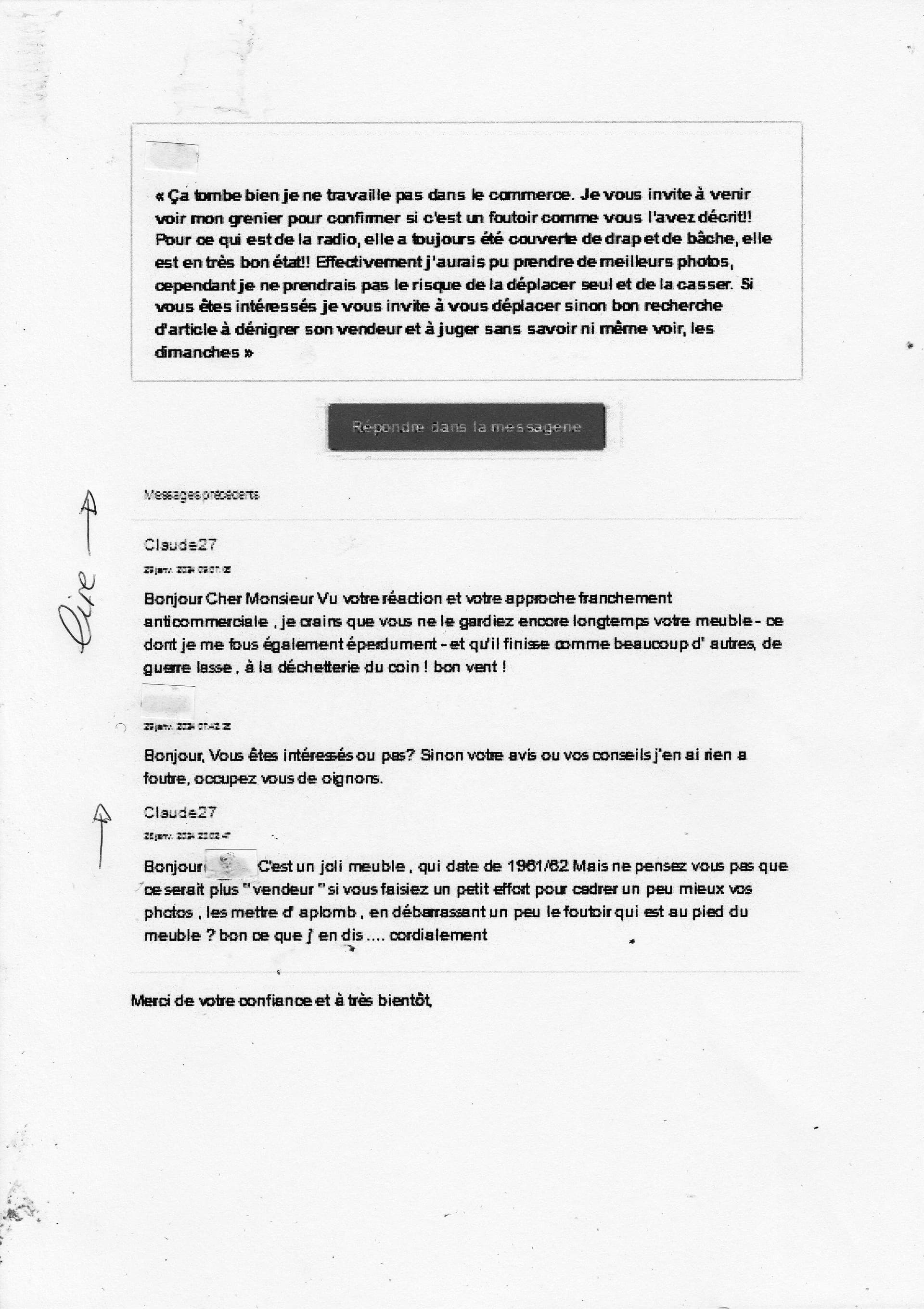 Mais comme il arrive parfois que je n’hésite pas à " mettre les pieds dans le plat " et à dire ce que je pense, comme dans cette correspondance du début 2024 … quand j’ estime que le vendeur se fout du monde, d’ autant que certaines fois il ( elle ) annonce en sus des prix extravagants à mon avis