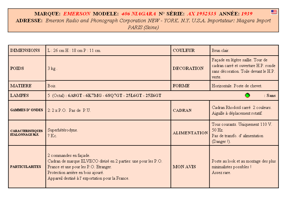 La caisse de cet Emerson 406 Niagara fait assez artisanale. Dans la fiche du Grand Livre, il existe d’ailleurs une autre présentation complètement différente: